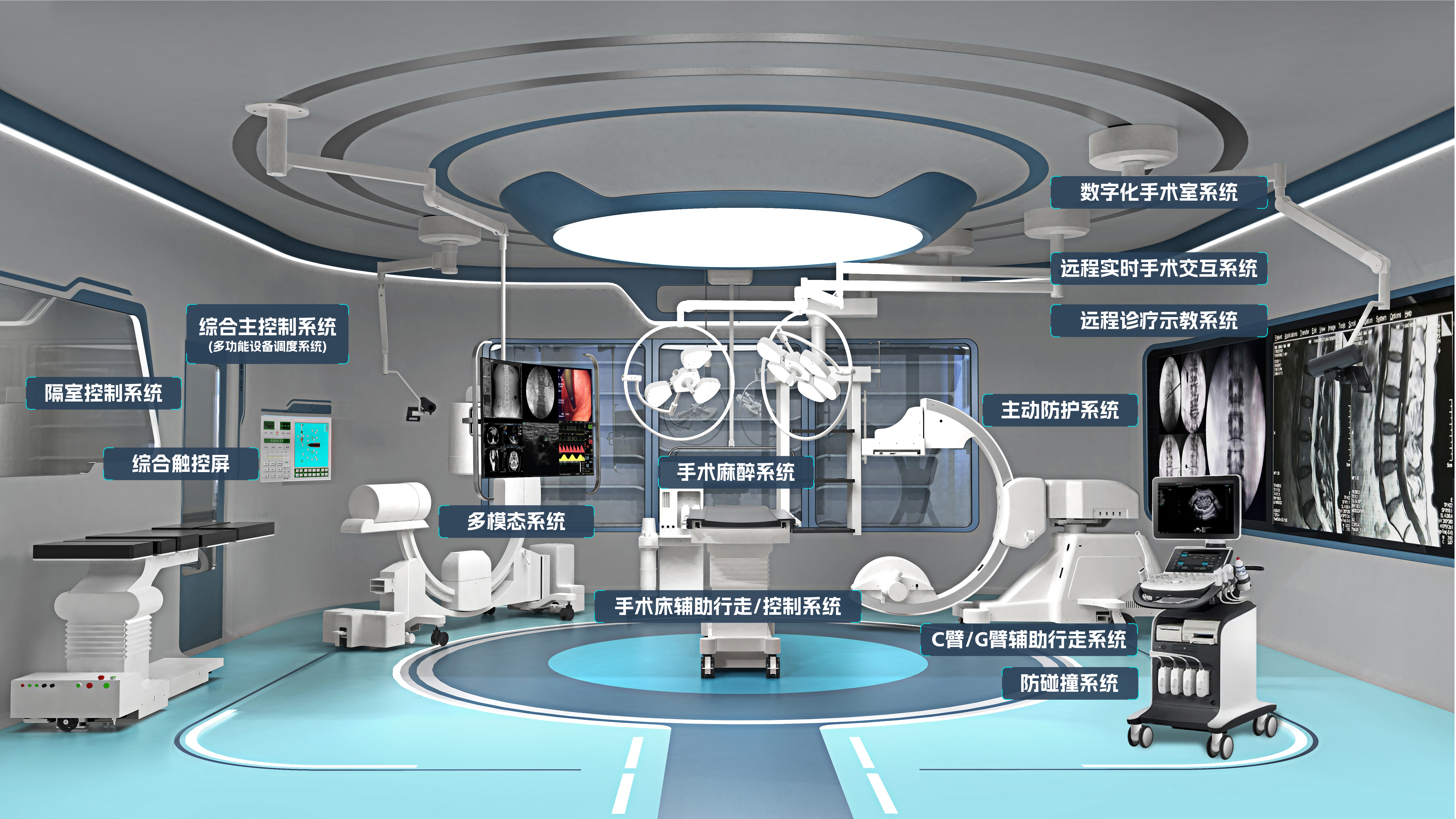 5G數(shù)字智能手術室系統(tǒng)是對數(shù)字化手術室的全面升級,更加關注手術實時交互、手術導航以及醫(yī)療信息顯示等功能,特別是在多模態(tài)、設備智能行走、手術床互換、主動防護、AR/VR遠程交互等系統(tǒng)獨樹一幟,全面支持跨界手術、聯(lián)合手術,是實現(xiàn)精準醫(yī)療、智慧醫(yī)療、遠程醫(yī)療以及個性化診療的有效途徑。